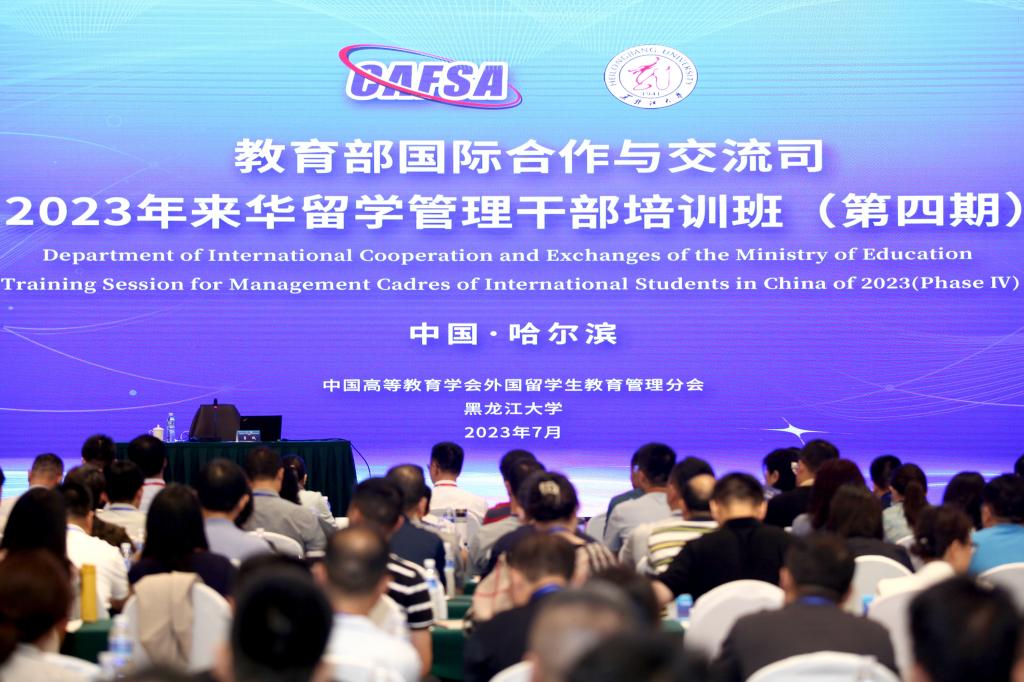7月27日-28日,由教育部國(guó)際合作與交流司主辦,中國(guó)高等教育學(xué)會(huì)外國(guó)留學(xué)生教育管理分會(huì)和黑龍江大學(xué)承辦的2023年全國(guó)來(lái)華留學(xué)管理干部培訓(xùn)班(第四期)在哈爾濱舉辦。外交部、教育部、國(guó)家移民管理局、中國(guó)高等教育學(xué)會(huì)外國(guó)留學(xué)生教育管理分會(huì)、黑龍江省教育廳、黑龍江大學(xué)領(lǐng)導(dǎo)出席開(kāi)班儀式,來(lái)自全國(guó)200余所院校來(lái)華留學(xué)管理干部參加本次培訓(xùn)。中國(guó)高等教育學(xué)會(huì)外國(guó)留學(xué)生教育管理分會(huì)副秘書長(zhǎng)宋玉霞主持開(kāi)班儀式。