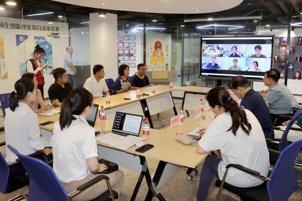 走訪后,專家組采取線上線下的方式隨機訪談部分老師和同學,藝術學服裝設計系主任張姝林表示,未來還需將數字化信息技術與服裝設計等相關專業深度融合;心理專業老師謝念湘就其社會服務進行介紹,并表示在教材編寫,對于心理實驗等方面還有進步空間。專家組就其教師和學生的發言 ,進行來進一步交流,并提出建議。