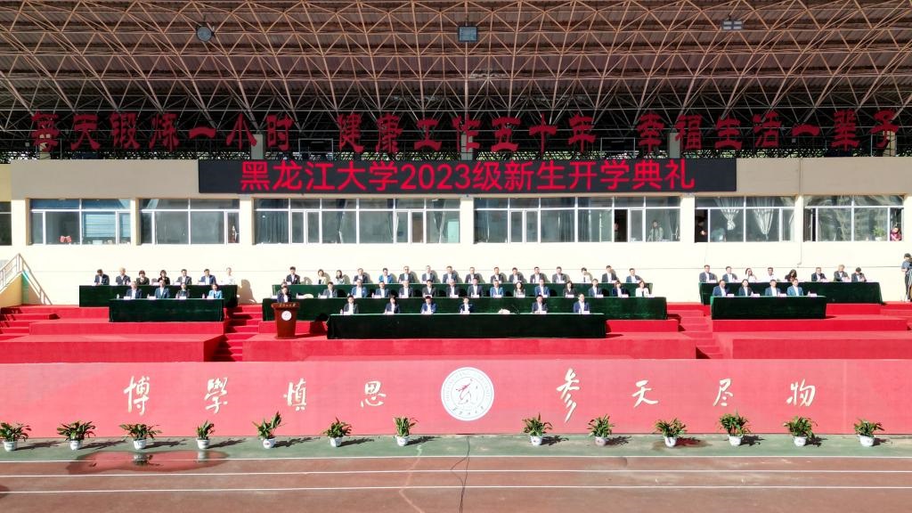 九月的哈爾濱,秋風送爽,天高云闊。9月12日上午,我校在2號田徑運動場舉行2023級新生開學典禮。校領導王敬波、丁宏、李君明、張穎春、于文秀、鐘衛東、李卓,各職能部門負責人、各學院領導、全體輔導員、校友代表及全體2023級新生參加開學典禮。典禮通過黑龍江大學官方視頻號同步直播。黨委副書記丁宏主持典禮。