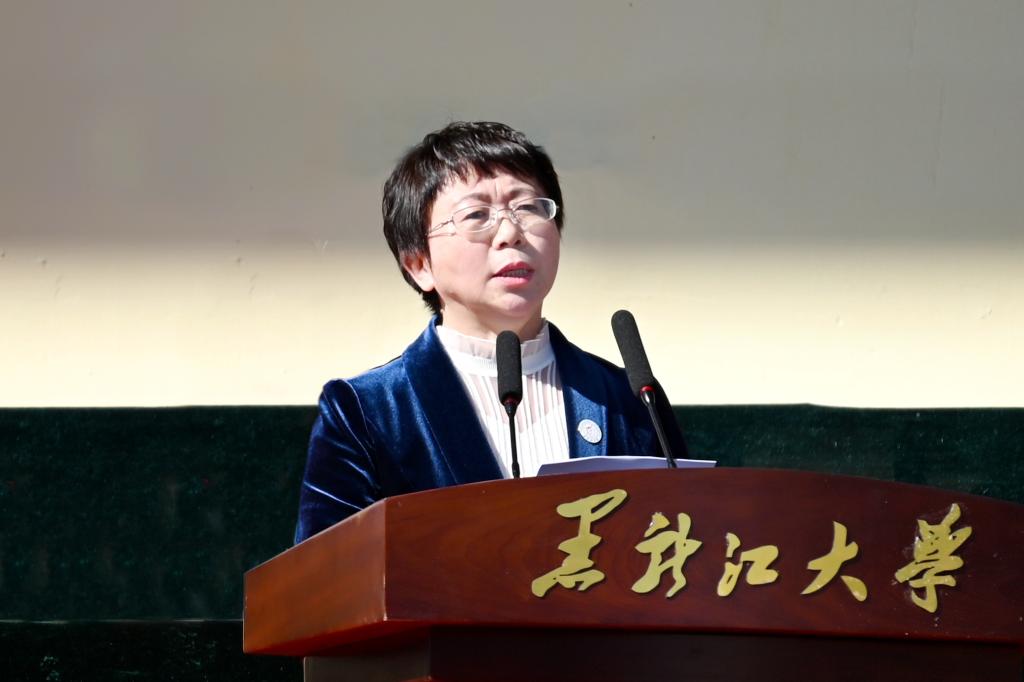 法學院博士生導師、國家教學名師王歌雅教授代表全體教師講話。她表示,在同學們打卡了黑大精神性的地標與沉浸式的校園體驗過后,希望同學們能夠盡快融入校園,了解感受獨屬于黑大自由獨立的精神品格和寬闊厚重的視野胸襟,為學校的發展建設添磚加瓦。她期望新同學將自己的理想抱負與家國情懷緊密相連,掌握過硬的技能本領,培養自身的人文素養,在成功的道路上砥礪前進。