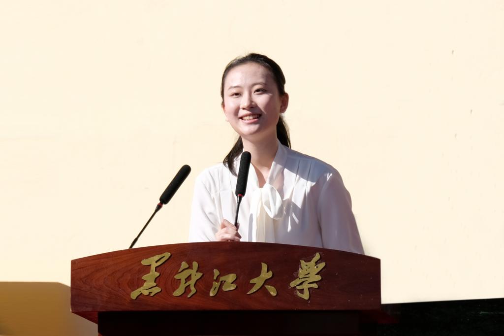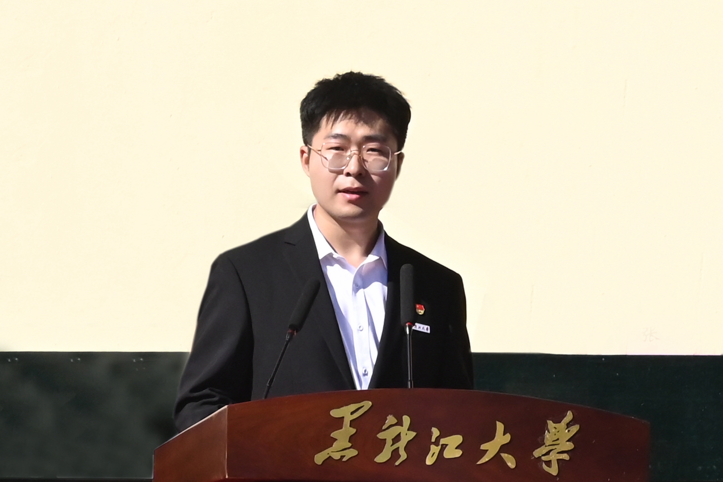 研究生院2022級計算機科學與技術專業崔延昌代表在校生發言。他結合自己在黑大七年的求學經歷,勉勵新同學以“博學慎思,參天盡物”的校訓,“志遠行實,學而不厭”的學風向下扎根、向上生長,做追夢筑夢、勇于擔當的黑大青年,譜寫砥礪奮進、絢麗多彩的青春華章。