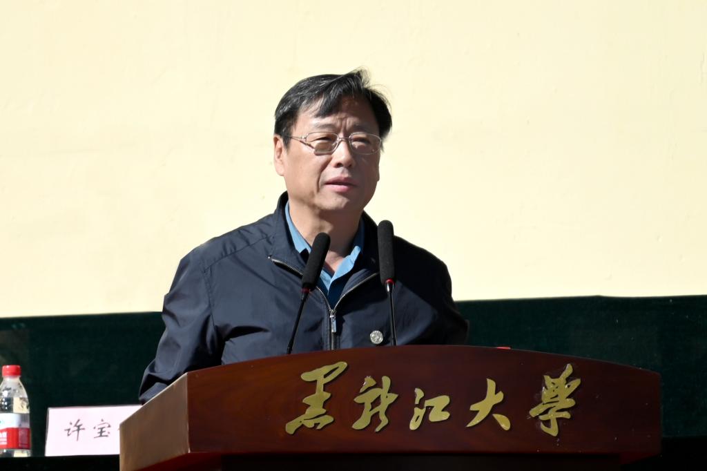 學校81級校友,中央黨校(國家行政學院)研究員、博士生導師、高級編輯、學習時報社社長許寶健作為校友代表講話。他深情回顧了在黑龍江大學求學的往事,結合自己的專業特長向同學們提出全方位發展的“五個一”,真正做一個養成一個好習慣、煉就一副好身板、樹立一個小目標、磨勵一種新思維、鍛造一副好德行的新時代大學生,讓自己的青春在黑大綻放出最明媚的色彩。