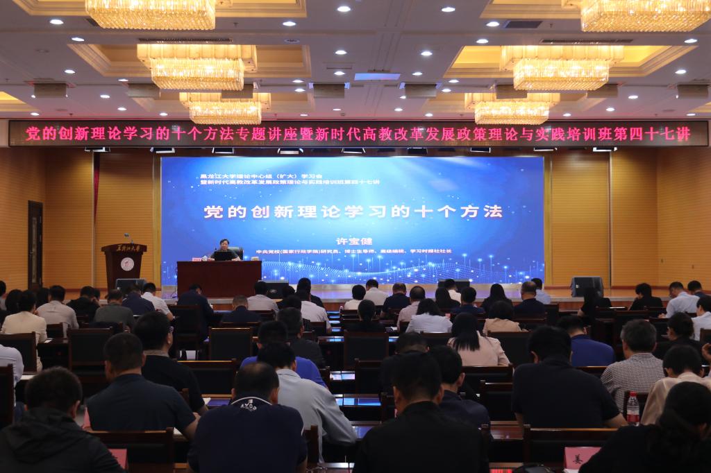 講座上,許寶健教授以《黨的創新理論學習的十個方法》主題,主要圍繞“以行促學”“以讀促學”“以問促學”“以議促學”“以思促學”“以講促學”“以寫促學”“以訪促學”“以考促學”“以研促學”共十個方面闡釋了黨的創新理論的學習方法。