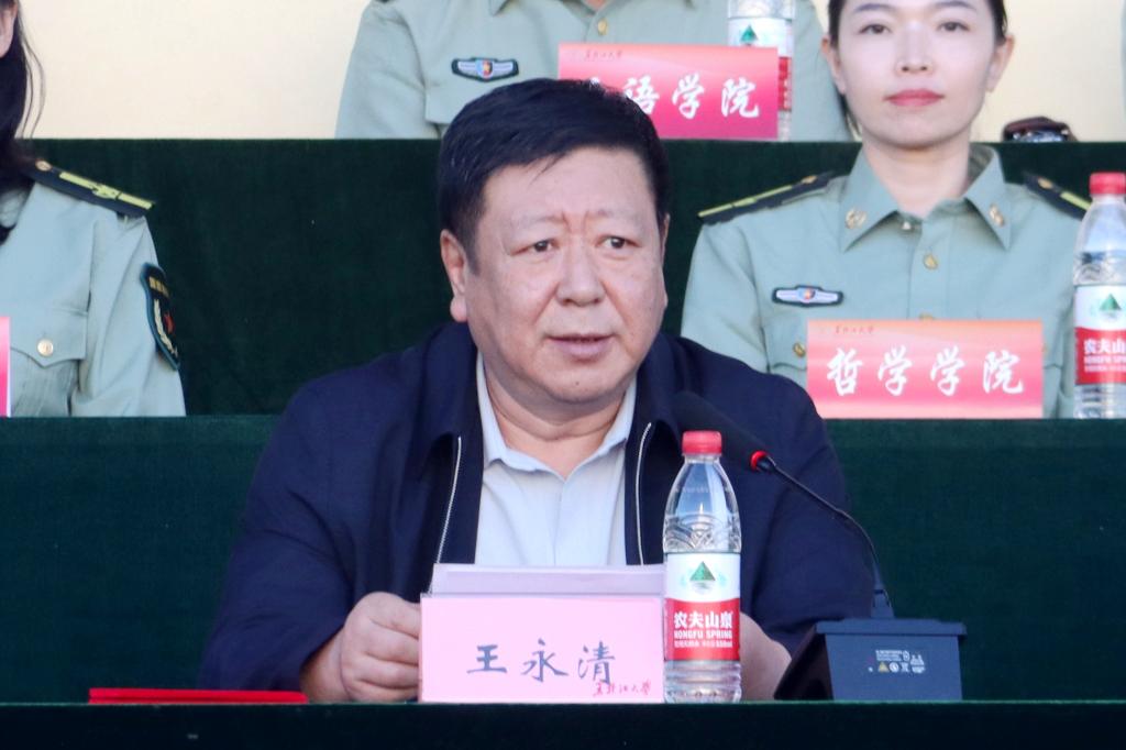 王永清指出,軍訓生活對同學們的體能、意志無疑都是巨大的考驗。同學們以堅韌不拔的意志戰勝了各種困難,在時間緊任務重的情況下,科學的推動安全軍訓,在提高軍事技能,提升身體素養的同時,錘煉出艱苦奮斗、勇敢頑強的良好品質。他強調,我們要將課堂教學與軍事訓練相結合,培養有理想、有紀律、有文化有道德的綜合性人才,全面提高學生素質,培養國防意識,激發愛國熱情。