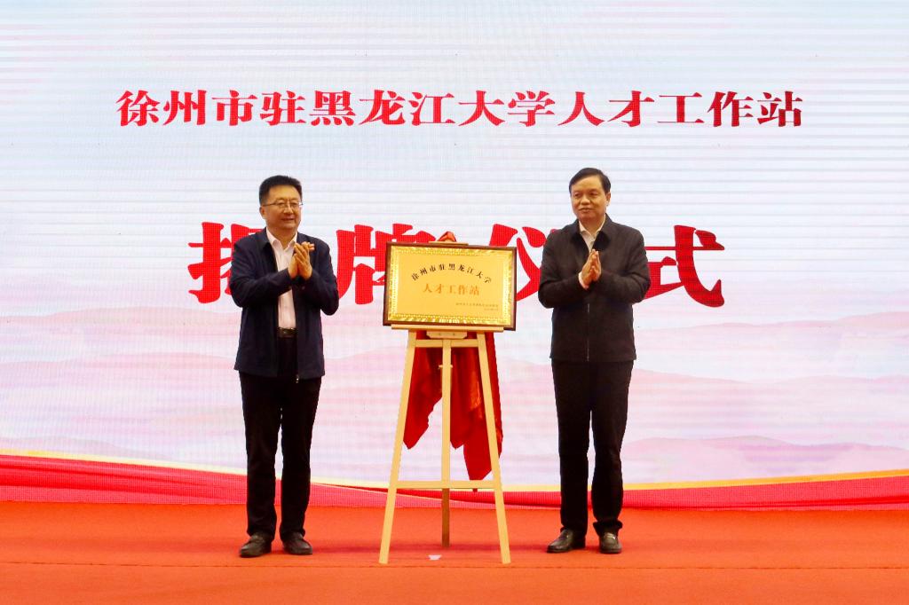會上,李君明與于洪亮共同為徐州市駐黑龍江大學人才工作站揭牌。
