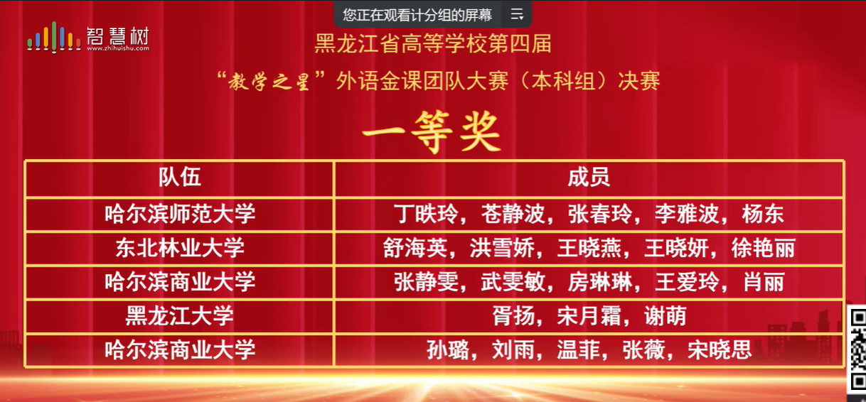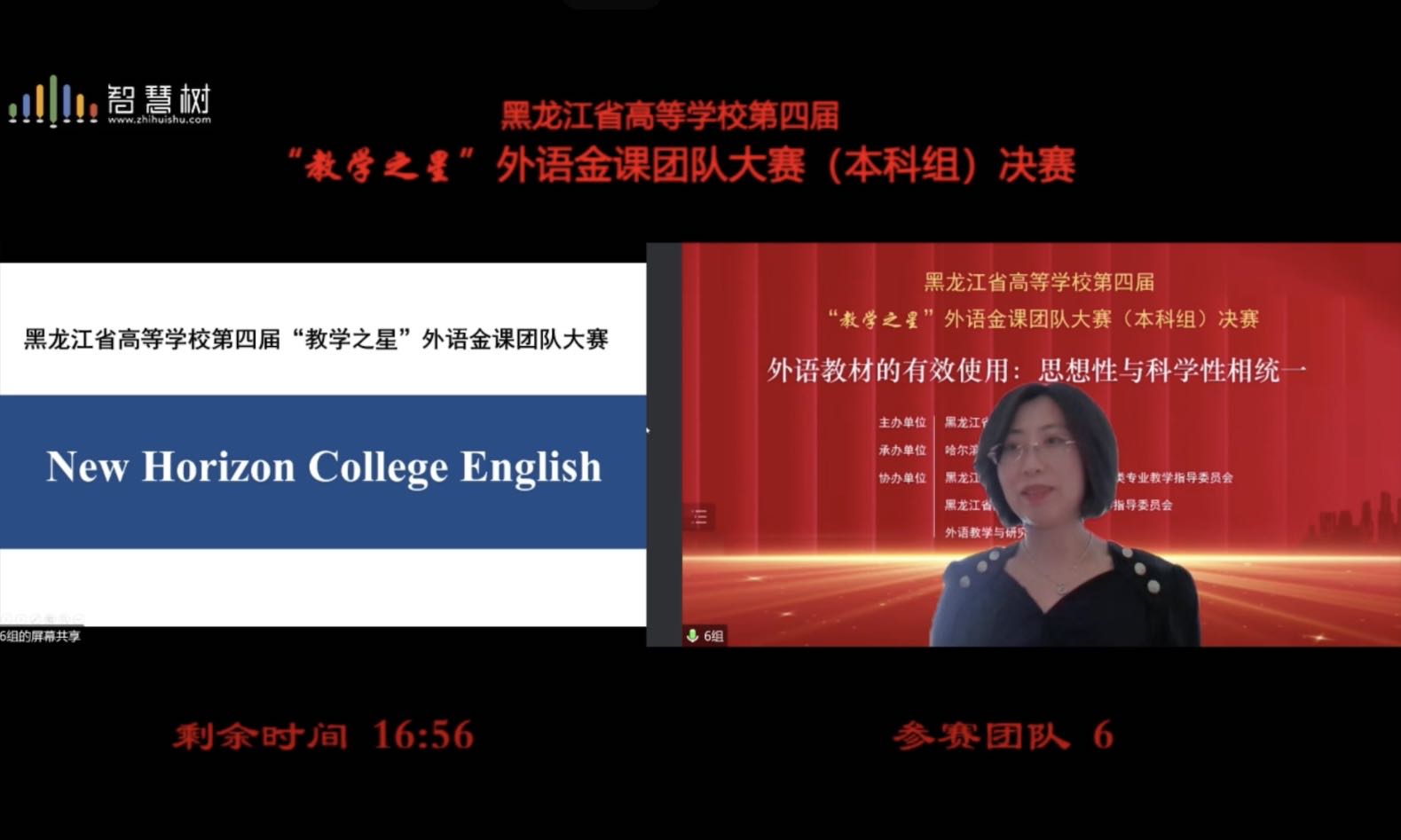11月13日,2022年黑龍江省高等學(xué)校第四屆“教學(xué)之星”外語金課團(tuán)隊(duì)大賽(本科組)決賽落下帷幕。本屆賽事由黑龍江省教育廳主辦、哈爾濱商業(yè)大學(xué)承辦、黑龍江省外國語言文學(xué)專業(yè)教學(xué)指導(dǎo)委員會、黑龍江省大學(xué)外語教學(xué)指導(dǎo)委員會和外語教育與研究出版社協(xié)辦。賽事設(shè)置校內(nèi)選拔賽、省復(fù)賽和省決賽,全省共有31個團(tuán)隊(duì)參賽。在決賽中,應(yīng)用外語學(xué)院胥揚(yáng)、宋月霜和謝萌三位教師組成的參賽團(tuán)隊(duì),通過教學(xué)理念闡述、教學(xué)實(shí)踐展示和問答等環(huán)節(jié),與兄弟院校參賽團(tuán)隊(duì)同臺競技,榮獲一等獎。