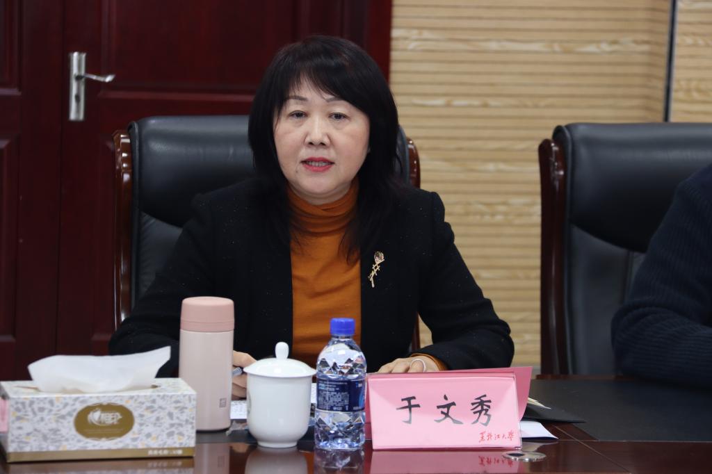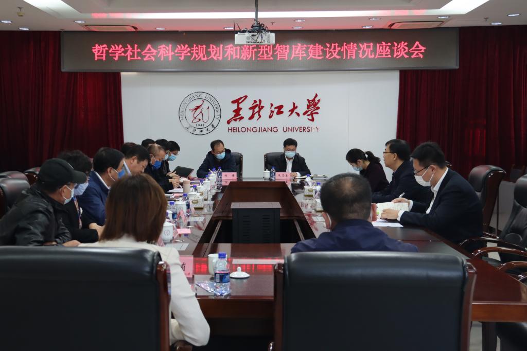 郝文斌在認真聽取匯報和交流發言后,對學校的相關工作予以肯定。他指出,貫徹落實《國家“十四五”時期哲學社會科學發展規劃》和《黑龍江省“十四五”時期哲學社會科學發展規劃》,必須堅持黨的全面領導。省哲學社會科學工作的目標是打造哲學社會科學高地,省哲學社會科學工作辦公室的理念是像對待家人一樣為廣大哲學社會科學工作者服好務,要做到真情、真誠、真知、真為。對于省哲學社會科學工作的構想,他談及五個方面。一是立足大學問,學習大先生的大情懷,不計功利;二是瞄準大格局,錨定黨和國家重大戰略需求,為中華民族偉大復興戰略全局而奮斗;三是把握大趨勢,要用新思想、新理念、新文科等新觀念為傳統哲學社會科學注入新活力,賦予新的時代特征、新的實踐要求和新的傳播動力;四是搭建大平臺,真正發揮平臺的作用, 建設好省級人文社科基地和省級新型智庫,推動基礎研究和應用對策研究協同發展;五是構建大體系,把構建自主知識體系作為學科體系、學術體系、話語體系的核心和基礎。此外,要牢牢掌握哲學社會科學話語權,講好中國故事。郝文斌強調,作為黑龍江人民的子弟校,黑龍江大學要繼續發揮好示范作用,在學科資源整合、學術組織方式、話語體系、國際傳播四個方面做好示范,推進我省哲學社會科學和新型智庫建設發展。此外,他還對學校馬克思主義學院建設、人才梯隊搭建等方面提出指導意見。