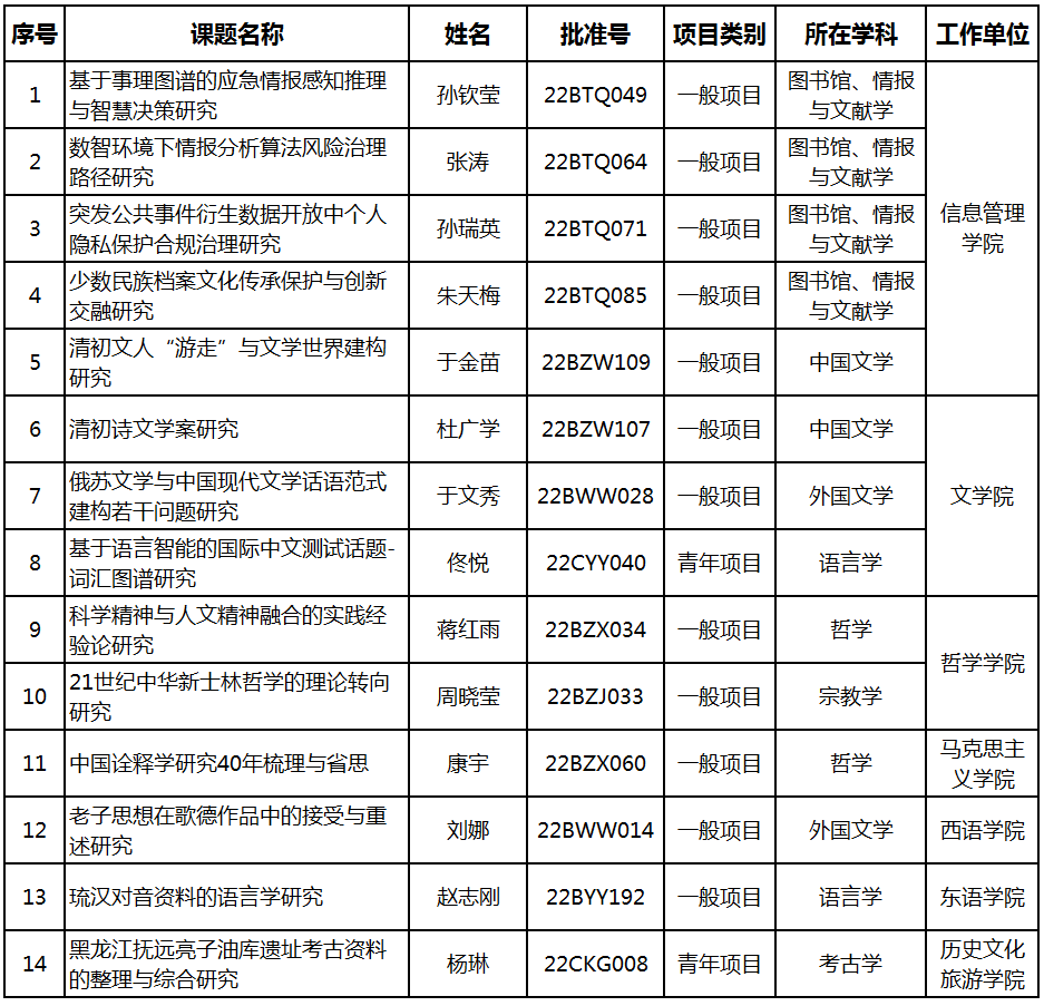 黑龍江大學(xué)2022年國(guó)家社會(huì)科學(xué)基金項(xiàng)目立項(xiàng)名單