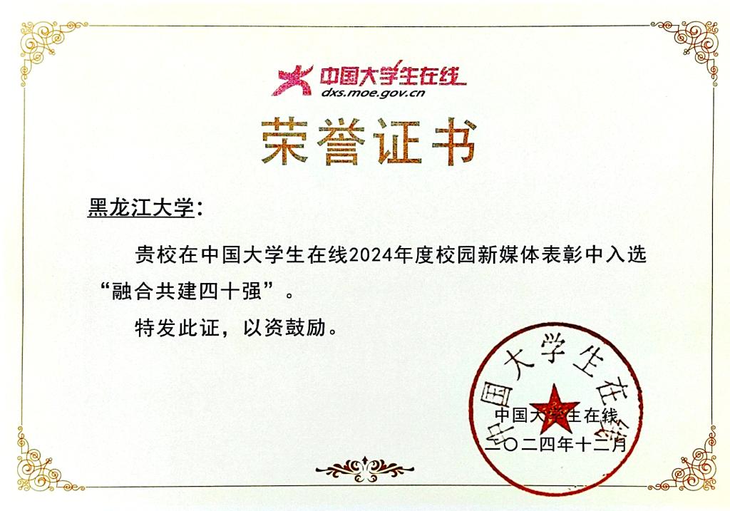 本次研討會(huì)上,還對(duì)2024年中國(guó)大學(xué)生在線校園優(yōu)秀網(wǎng)絡(luò)通訊站、優(yōu)秀新媒體共建高校進(jìn)行了表彰。黑龍江大學(xué)榮獲中國(guó)大學(xué)生在線2024年度校園新媒體融合共建四十強(qiáng)、黑龍江省高校網(wǎng)絡(luò)思想政治工作中心榮獲中國(guó)大學(xué)生在線2024年度校園新媒體優(yōu)秀合作伙伴,黨委宣傳部肖博宇同志獲評(píng)校園新媒體優(yōu)秀指導(dǎo)教師。黑龍江大學(xué)獲評(píng)優(yōu)秀校網(wǎng)通站,《點(diǎn)亮青春,成長(zhǎng)陪伴,祝小中20歲生日快樂(lè)!》入選年度優(yōu)秀內(nèi)容榜單,黨委宣傳部肖博宇同志獲評(píng)校網(wǎng)通優(yōu)秀指導(dǎo)教師、校園行活動(dòng)優(yōu)秀指導(dǎo)教師,新聞傳播學(xué)院陳書(shū)洋獲評(píng)校網(wǎng)通優(yōu)秀編輯,黑龍江大學(xué)黨委宣傳部獲評(píng)校園行活動(dòng)優(yōu)秀組織單位。(黨委宣傳部供稿)