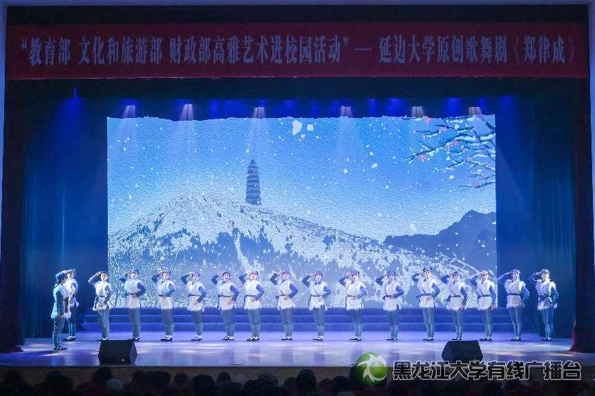 9月24日,由教育部、文化和旅游部、財政部主辦,我校與延邊大學共同承辦的“高雅藝術進校園”活動在音樂廳舉行。延邊大學原創歌舞劇《鄭律成》作為本次核心演出節目,為我校師生帶來兩場精彩展演。校黨委副書記劉鳳影,校團委、藝術學院等部門負責人同近2000名師生觀看演出。