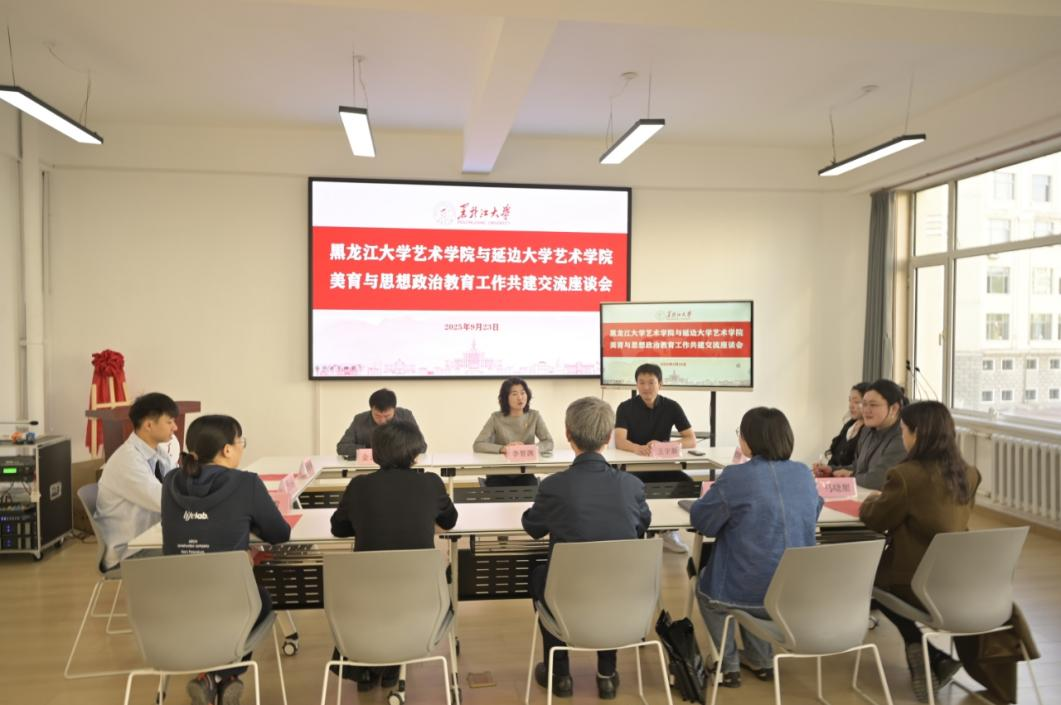 這場以民族歌舞劇《鄭律成》為核心的“高雅藝術進校園”活動,不僅是兩校深化合作的生動實踐,更在藝術人才培養、校園文化建設與紅色美育傳播中搭建起多維聯動平臺。9月23日,鄭律成扮演者車海龍等主創人員,圍繞劇中唱段情感表達、舞蹈動作技巧展開教學,與我校學生藝術團互動交流,聽雪合唱團與演出團隊還共同排演經典歌曲《延安頌》,在歌聲中體悟信仰力量,在與同齡人交流中,收獲了紅色故事的新詮釋角度。排練期間,延邊大學藝術學院黨委書記李智淵一行到藝術學院進行交流座談。李智淵以《鄭律成》編排過程為例,介紹了學院在美育教育和學科建設方面的具體做法,雙方從黨建與業務工作融合共建、課程思政、美育與思想政治教育、高校“一站式”學生社區和“美育+思政”輔導員工作室建設等方面進行了交流座談。