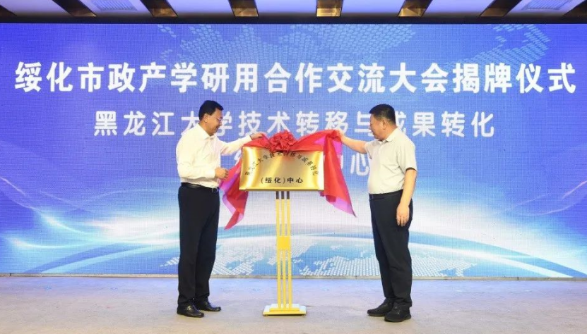 王永清與綏化市委書記張寶偉共同為黑龍江大學(xué)技術(shù)轉(zhuǎn)移與成果轉(zhuǎn)化(綏化)中心揭牌。