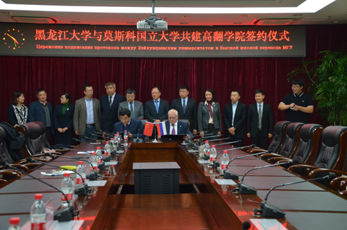 我校與莫斯科國立大學高翻學院合作共建高翻學院是在國家“一帶一路”重大戰略部署背景下,加快落實省委省政府提出關于建立高級翻譯學院的指示精神,主動適應全球化發展對高層次國際化人才的迫切需求,實現與莫斯科國立大學高翻學院資源優勢互補,共同培養具有創新能力、國際視野的高層次、專業化、實用性翻譯人才,為中俄全面戰略協作伙伴關系的深化發展提供人才保障和智力支持的重大舉措。本次簽約儀式標志著兩校進入了實質性合作階段,步入了合作發展的快車道,雙方將共同致力于培養世界一流的俄漢翻譯人才,攜手共建世界一流的高翻學院,為中俄兩國友好發展做貢獻。(攝影:李澤峰 周嘉勛 滕悅)