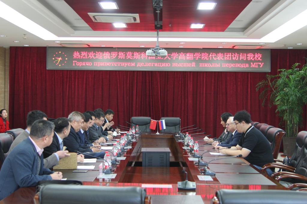 劉德權書記對代表團一行表示歡迎,并從學科布置、師資力量、教學特點、人才培養模式等方面介紹了我校的基本情況,重點突出了我校俄語學科的培養優勢與教學特色。他表示,與莫大合作建設聯合高翻學院得到了省政府、省政協的高度重視,雙方的學科優勢較為契合,能夠在培養高層次翻譯人才的同時為中俄兩國長期發展做出貢獻,學校對下一步的合作充滿期待。