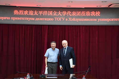 6月19下午,太平洋國立大學校長謝爾蓋·尼古拉耶維奇·伊萬琴科一行來我校訪問,代表團一行首先參觀了我校校史館,隨后與我校校長付宏剛、副校長嚴明在主樓八樓會議室進行會談。我校俄語學院、中俄學院、應用外語學院、國際合作與交流處等相關負責人參加了本次會談。