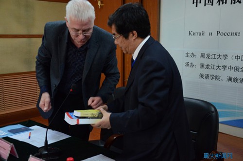 在會議開始時,俄羅斯布拉戈維申斯克國立師范大學歷史語言系系主任Д.П.博羅金教授、我校歷史文化旅游學院院長段光達教授分別致辭,并代表雙方互贈了學術成果。在隨后的研討會上,在由來自中、俄的六位學者進行了大會主旨報告后,與會專家學者分成兩組,分別圍繞中俄文化交流、跨界民族研究及黑龍江流域歷史文化等問題和中俄全面戰(zhàn)略協作、中俄關系與東北亞國際政治等問題進行學術研討,并達成共識,要進一步加強中俄之間交流與對話,促進彼此之間的互相了解,互知才能達到長久的協作。