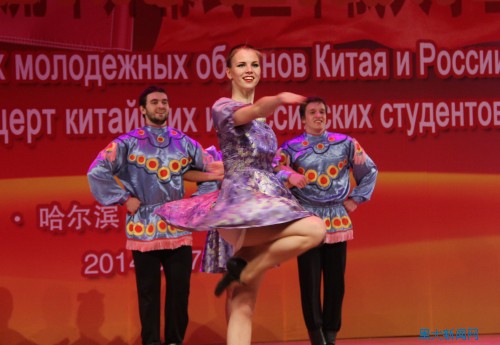 演出活動中,中俄兩國青年表演了異彩紛呈的文藝節目。由黑龍江大學藝術團帶來的開場舞《中俄芭比》以中國娃娃和俄羅斯娃娃獨具兩國特色的造型、服裝和豐富的舞蹈情節,表現了中俄兩國青年學生的青春風采和活力。來自布拉戈維申斯克師范大學的俄羅斯美女演唱了中文歌曲《你是我的玫瑰花》,歌曲熱情洋溢,唱出了不同的感覺,由該校帶來的舞蹈《俄羅斯組舞》也同樣精彩。東北農業大學、哈爾濱師范大學和哈爾濱學院也表演了各具特色的節目,無論是穿著民族服飾和古代服裝的舞蹈《中國美》,還是結合舞劍、太極的武術《鐵血丹心》都引起了場下的掌聲和歡呼。