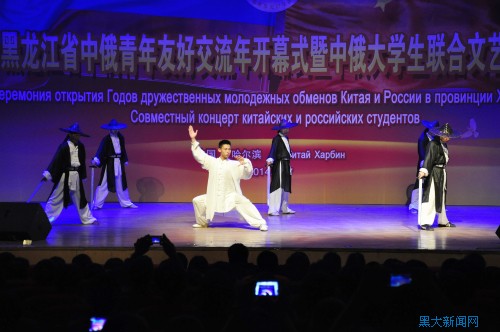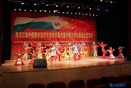 5月17日晚19時,黑龍江省“中俄青年友好交流年”開幕式暨中俄大學生聯合文藝演出在黑龍江大學音樂廳舉行。此次活動由黑龍江省教育廳主辦,黑龍江大學承辦,旨在充分發揮地緣、歷史與人文優勢,推動中俄青年大學生友好往來。