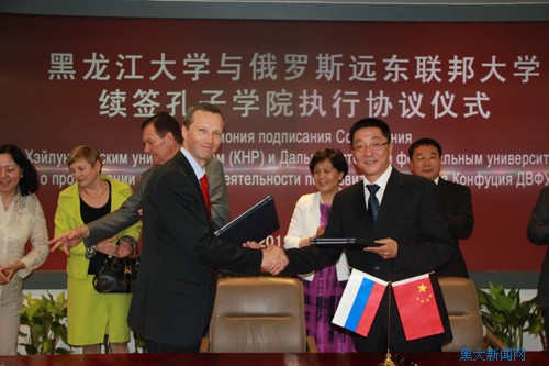 據悉,遠東聯邦大學,其前身遠東國立大學于2006年12月21日與黑龍江大學合作成立孔子學院,是俄羅斯第一所正式運營的孔子學院,中共中央政治局常委、國家副主席習近平同志曾親自蒞臨視察工作,并作出重要指示。我校已先后為遠東聯邦大學孔子學院派出了四任中方院長和多名國際漢語教師志愿者。(責任編輯:學校辦公室)