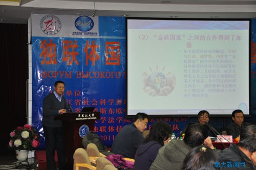 由黑龍江省社會科學(xué)界聯(lián)合會、黑龍江省俄羅斯東歐中亞學(xué)會、哈爾濱工業(yè)大學(xué)法學(xué)院中亞法律研究所、黑龍江大學(xué)高層次人才支持計劃—黑龍江大學(xué)獨聯(lián)體技術(shù)創(chuàng)新研究團(tuán)隊主辦的“獨聯(lián)體國家創(chuàng)新與發(fā)展高級論壇”于2011年12月18日在黑龍江大學(xué)外事處多功能廳隆重舉行。