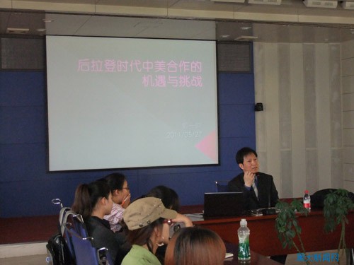 本場講座,郭教授圍繞時下熱議的恐怖分子本?拉登被射擊身亡一事展開,就中美兩國當前關系問題深入分析。郭教授指出,反恐工作一直都是美國政府的頭等大事。自9?11事件開始,中美兩國達成了反恐統一戰線。今年的5月1日,基地組織靈魂人物本?拉登被擊身亡,勢必影響美國對反恐戰略展開新的布局,同時也會對中美反恐盟友關系提出新的挑戰。兩個小時的報告里,郭教授簡明扼要地闡述了中美兩國近年來互相合作的積極作用,以及恐怖主義對中美兩國的深遠影響。(責任編輯:王蕾 攝影:孫立雨)