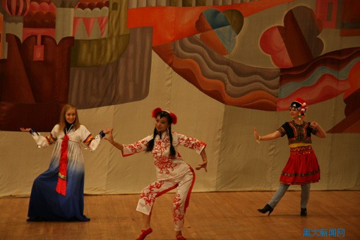 俄中大學生藝術節(jié)上中俄學生共唱《真心英雄》