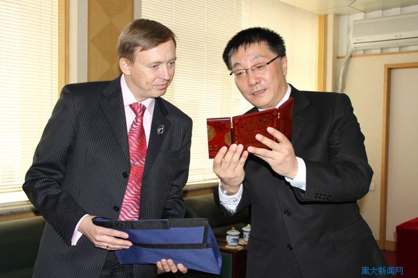 張校長親切接待了西伯利亞法律經(jīng)濟(jì)管理學(xué)院校長鮑?尤?維納格拉多夫一行,并代表黑龍江大學(xué)發(fā)表了熱情洋溢的講話。他說:“我校高度重視與西伯利亞法律經(jīng)濟(jì)管理學(xué)院的合作,希望以此為基礎(chǔ),進(jìn)一步拓展聯(lián)合培養(yǎng)學(xué)生渠道,以習(xí)近平副主席考察我校幫建的俄羅斯遠(yuǎn)東國立大學(xué)孔子學(xué)院為契機(jī),借助2010俄羅斯?jié)h語年的有利時機(jī),進(jìn)一步擴(kuò)大對外合作規(guī)模與層次,加強(qiáng)與西伯利亞高校間的合作?!?/p>