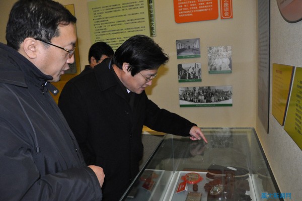 上午10時許,我校副校長丁立群在校教務處處長蔣鯤,歷史文化旅游學院院長段光達,副院長李朋、蘇兆成及歷史、旅游、考古三個專業負責人的陪同下來到金上京歷史博物館。博物館館長劉學彥等熱情接待了丁立群副校長一行,并陪同參觀了舒群紀念館、銅鏡館、晁楣藝術館等地。所到之處,劉學彥館長就有關歷史人物和事件做出了細致、全面的講解。丁立群副校長一行不時駐足欣賞,并高度評價了博物館館藏文物的歷史價值。