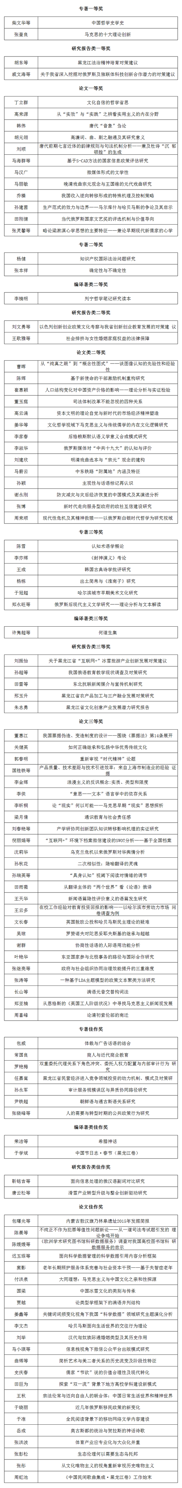 黑龍江省第十九屆社會科學優秀成果獎黑龍江大學獲獎名單