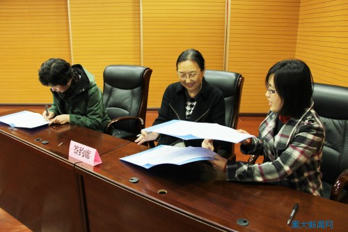 何穎校長與入選教師代表、培養單位負責人共同簽訂了《黑龍江大學學科青年學術骨干百人支持計劃聘期合同》。