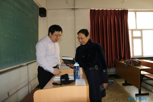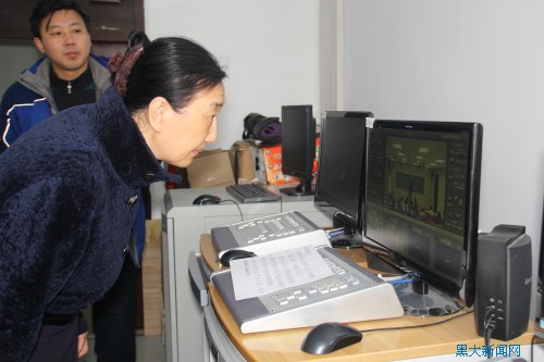 在匯文樓,何穎校長一行對教師上課情況、學生出勤情況、教學設備使用情況等進行了認真細致的檢查。檢查過程中,何校長同師生親切交談,了解課程內容、學生人數、教材、課時等情況,詢問學生的學習情況,并鼓勵同學們努力學習,取得好成績。在多媒體教室和網絡課錄制教室,何校長一行查看了設備的使用情況,并叮囑相關負責人定期進行設備檢測,提高多媒體使用效率,保證正常的教學秩序。
