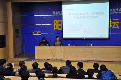 為推進(jìn)我校信息化建設(shè)的進(jìn)程、加快數(shù)字校園建設(shè)的步伐,11月2日上午10點(diǎn),教育信息化與高校數(shù)字校園研究實(shí)踐報(bào)告會(huì)在我校陽(yáng)光講壇舉行。本次報(bào)告會(huì)由清華大學(xué)教育研究院博士生導(dǎo)師程建鋼教授主講,我校副校長(zhǎng)何穎出席會(huì)議。教務(wù)處處長(zhǎng)蔣鯤,教務(wù)處副處長(zhǎng)張少杰、吳華洋,黨委宣傳部、統(tǒng)戰(zhàn)部副部長(zhǎng)楊其濱,現(xiàn)代教育技術(shù)中心副主任孫柏祥,信息與網(wǎng)絡(luò)建設(shè)管理中心副主任王磊、李寧及各教學(xué)單位教學(xué)院長(zhǎng)、系主任、教研室主任、實(shí)驗(yàn)室主任和2011年新留校教師一同參加了報(bào)告會(huì)。